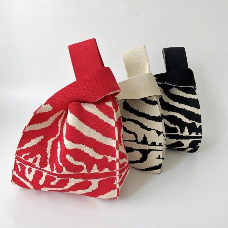 INS 韓国 ニットバッグ トートバッグ マルシェバッグ エコバッグ サブバッグ ミニトート ミニバック トート バッグ 人気 ゼブラ モノクロ 赤白黒 3color